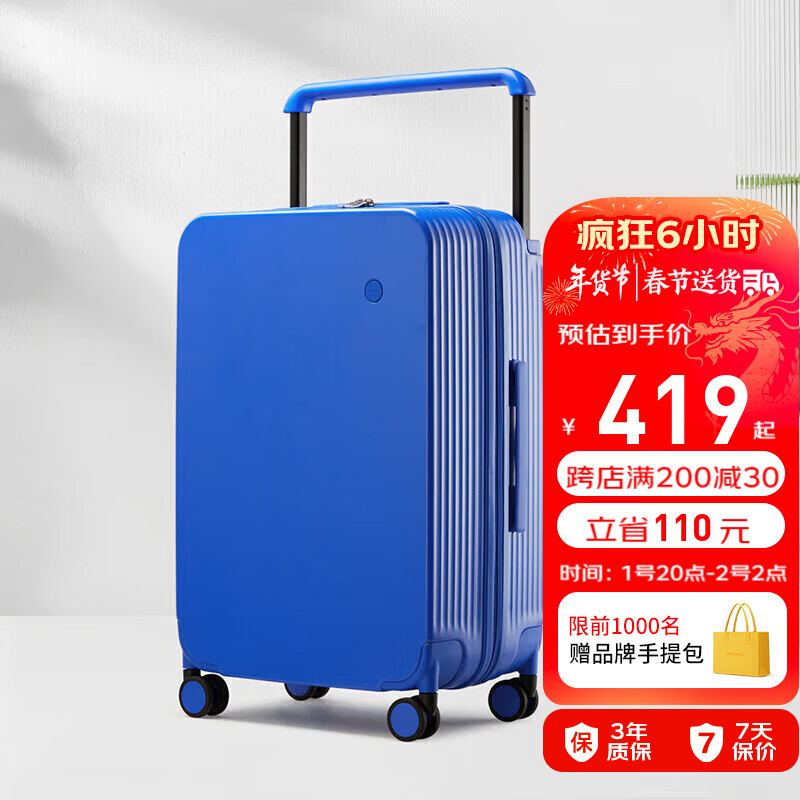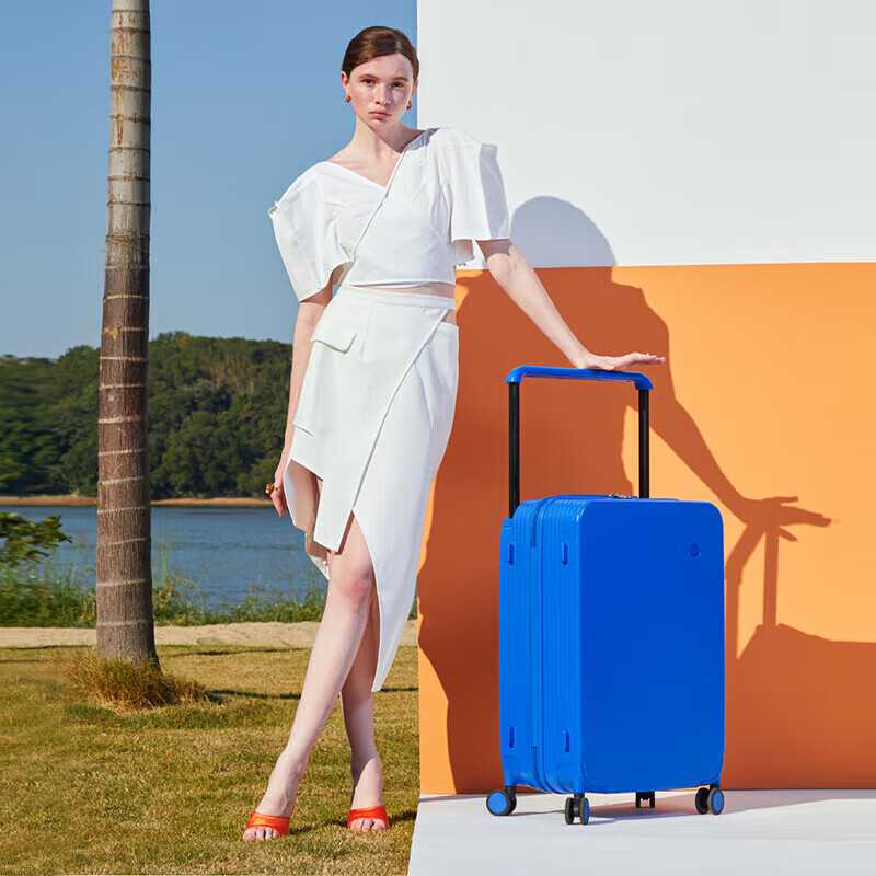米熙高颜值宽拉杆箱子24英寸行李箱大容量旅行箱子女密码箱男克莱茵蓝价格:529.00元!