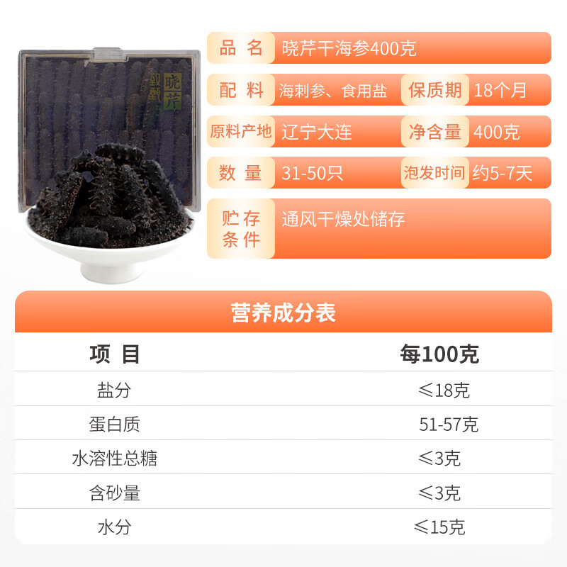 商品名称:晓芹干海参
