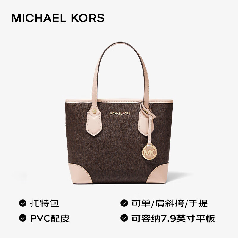 MICHAEL KORS礼物MK女包EVA老花单肩手提包托特包子母包 超小号 深棕色/裸粉色价格:849.00元!