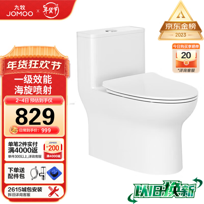 九牧(JOMOO)11173-2-1/31KA-3家用大冲力海旋喷射虹吸排污马桶坐便器305坑距价格:1049.00元!