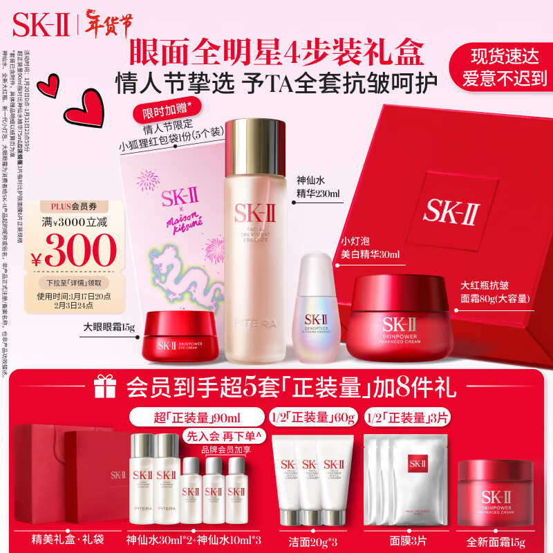 SK-II神仙水230ml+全新面霜80g+小灯泡精华30ml+眼霜15g护肤套装化妆品价格:5040.00元!
