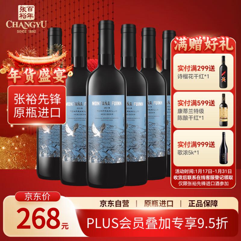 张裕先锋 西班牙富茵山 半干红葡萄酒 750ml*6瓶 整箱装 进口红酒价格:268.00元!