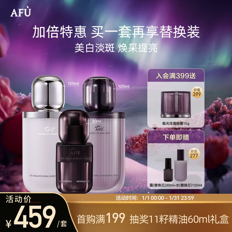 阿芙(AFU)极光玫瑰焕采水乳精华套装水120ml+乳120ml+精华30ml 送女友礼物价格:459.00元!