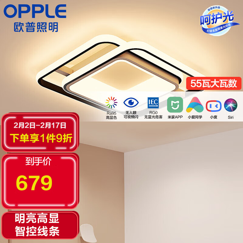欧普(OPPLE)LED吸顶灯卧室灯客厅卧室餐厅方灯具 MX5555-D55WTT-01价格:754.00元!