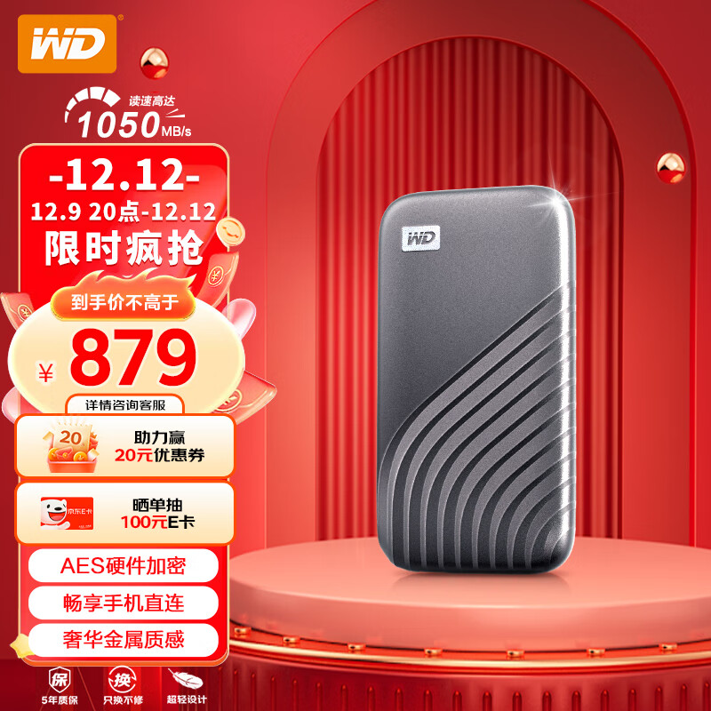 西部数据(WD)2TB NVMe 移动固态硬盘(PSSD)My Passport随行SSD type-c接口 1050MB/s 手机笔记本外置外接价格:899.00元!