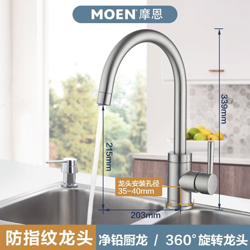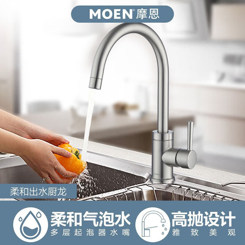 摩恩(MOEN)家用净铅高抛厨房水龙头冷热水 可旋转冷热水龙头 防指纹龙头价格:819.00元!