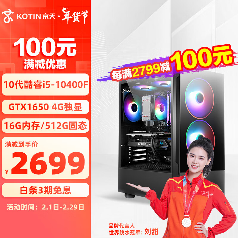 京天 决斗D5S i5 10400F/GTX1650 4G/16G DDR4/512G固态游戏电竞吃鸡台式组装DIY电脑主机UPC价格:2799.00元!