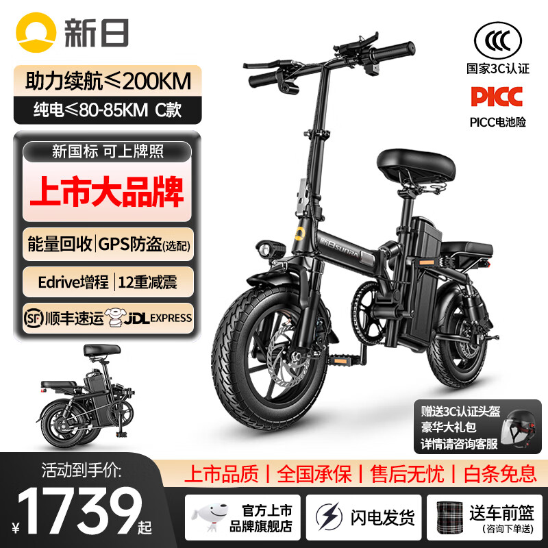 新日上市品牌新国标折叠电动自行车铝合金代驾电动车锂电池助力电瓶车价格:2079.00元!