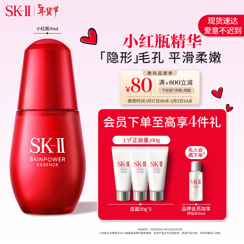 SK-II小红瓶30ml修护精华液sk2提拉紧致淡化细纹skii护肤品化妆品skll价格:980.00元!