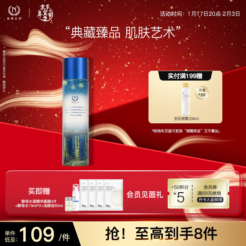 自然之名卓能修护酵母水200ml梵高典藏版价格参考: