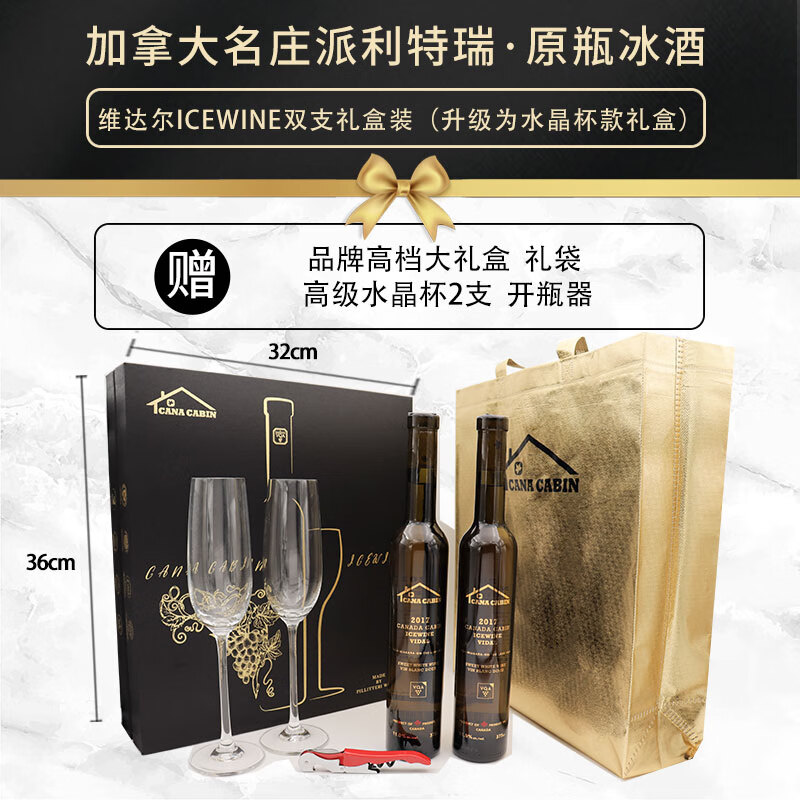 CANA CABIN加拿大原瓶进口冰酒葡萄酒维达尔ICEWINE冰白双支礼盒过年送礼价格:688.00元!