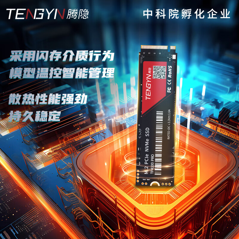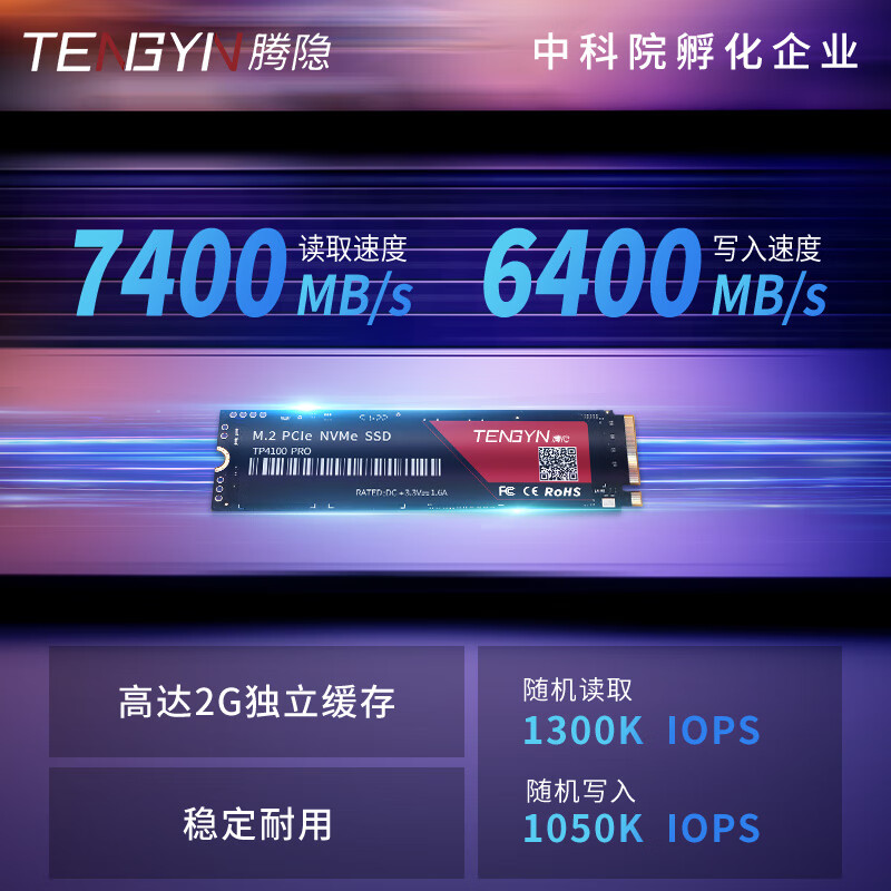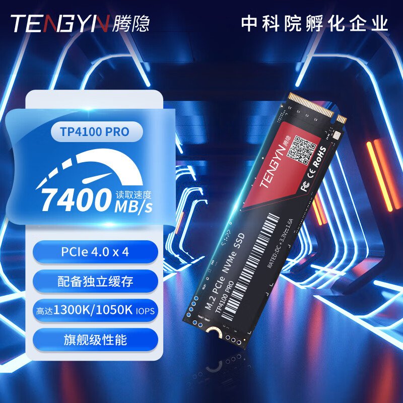 腾隐(TENGYIN)精选长江存储晶圆台式机笔记本SSD固态硬盘PCIe4.0 NVMe TP4100PRO 2TB 7500MB/S 价格:719.00元!