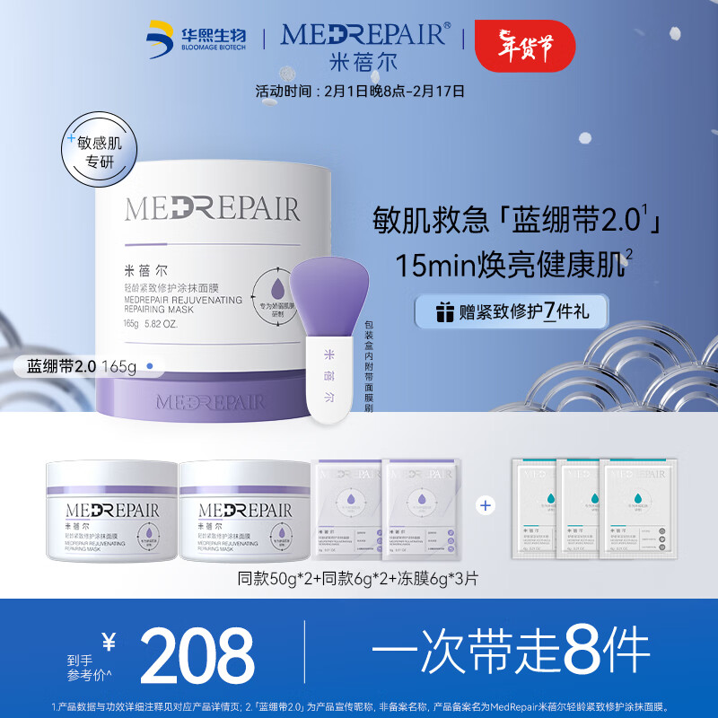 米蓓尔(MedRepair)轻龄紧致修护涂抹式蓝绷带面膜2.0补水保湿舒缓泥膜165g价格:208.00元!