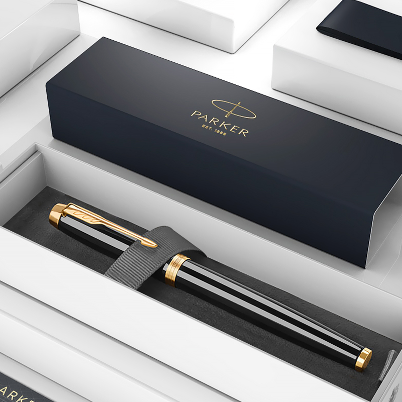 派克(PARKER)宝珠笔 圆珠笔 签字笔 商务送礼 男女生日礼物 学生练字书法文具套装 IM丽雅黑金夹宝珠笔价格:370.00元!