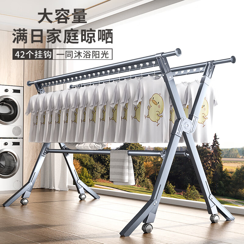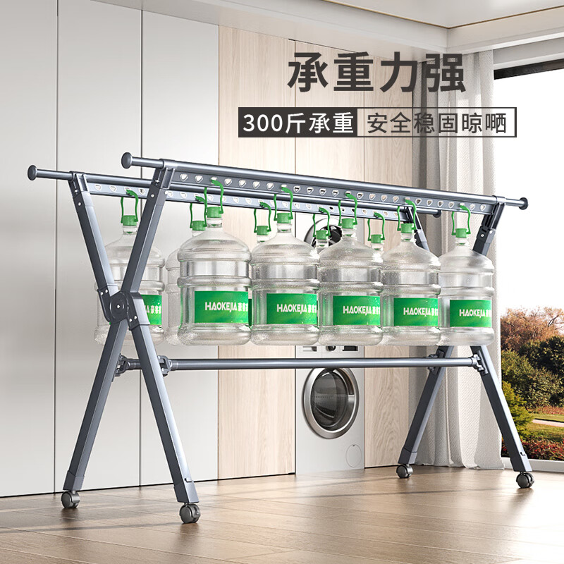 豪客家(HKG)晾衣架落地铝合金折叠伸缩室内阳台家用晒衣晒被子神器晾衣杆价格:328.00元!