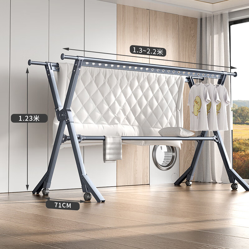 评测对比豪客家星空灰X型双杆+滚轮+防风脚【1.3M-2.2M】落地晾衣架真实使用评测?真实情况如何?