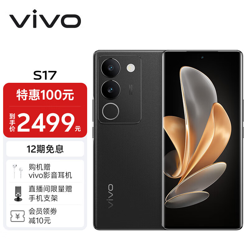 vivo S17 12GB+512GB 玄黑 前置5000万广角柔光 后置智慧柔光环 1.5K超视网膜屏 5G 快充 拍照 手机价格:2599.00元!