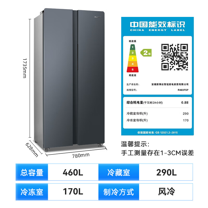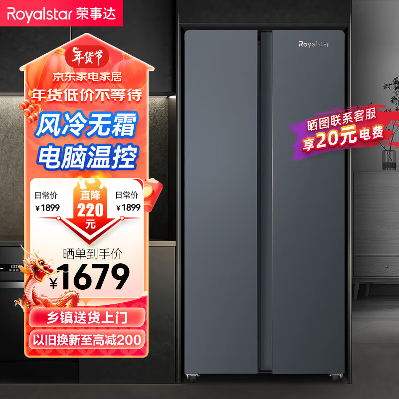 荣事达(Royalstar)460升对开门双开门超薄嵌入节能家用电冰箱大容量 风冷无霜 智能恒温 除菌净味 R460FSP价格:1699.00元!