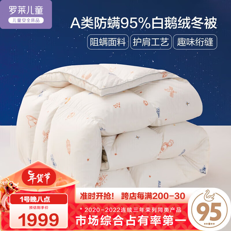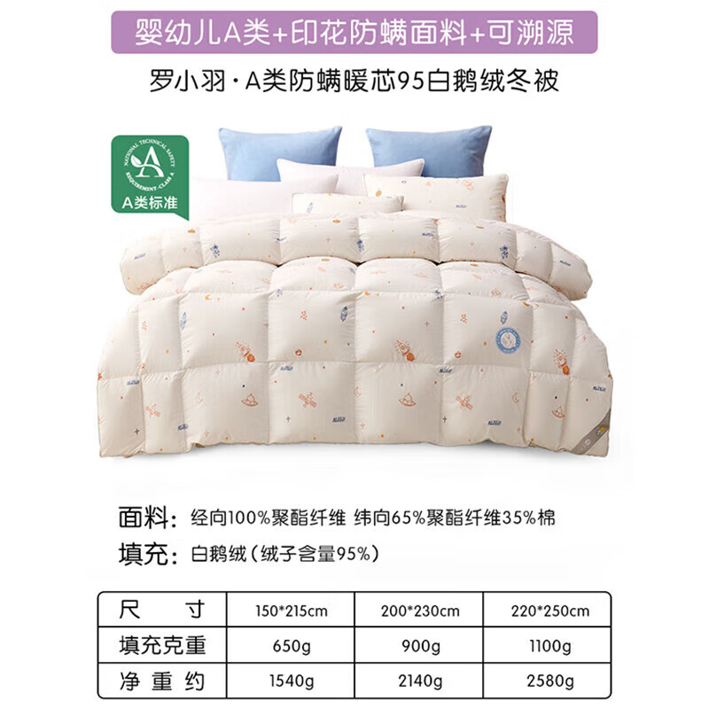 罗莱儿童 暖芯 A类防螨95%白鹅绒羽绒被 冬被 4.3斤 200*230cm 印花价格:2499.00元!