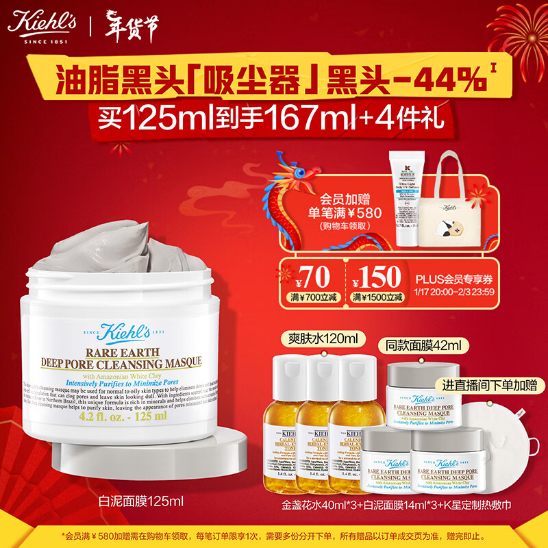 科颜氏(Kiehl's)白泥清洁面膜125ml收缩毛孔去黑头护肤品 礼盒生日礼物女新年价格:350.00元!