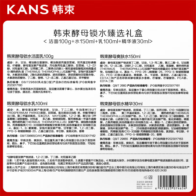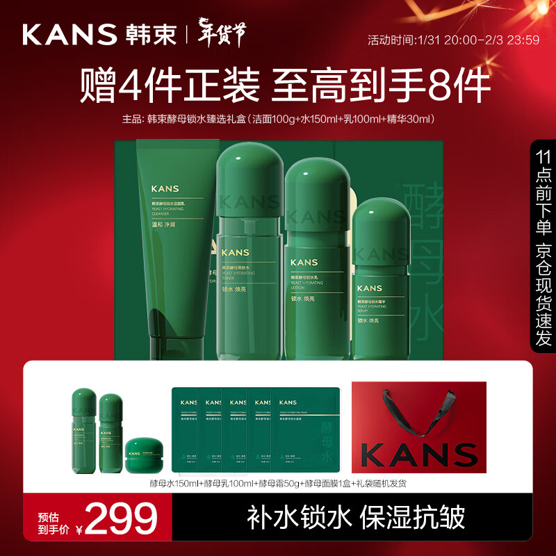 韩束酵母锁水臻选礼盒洁水乳精4件套 补水保湿锁水焕亮抗皱送女生价格:299.00元!