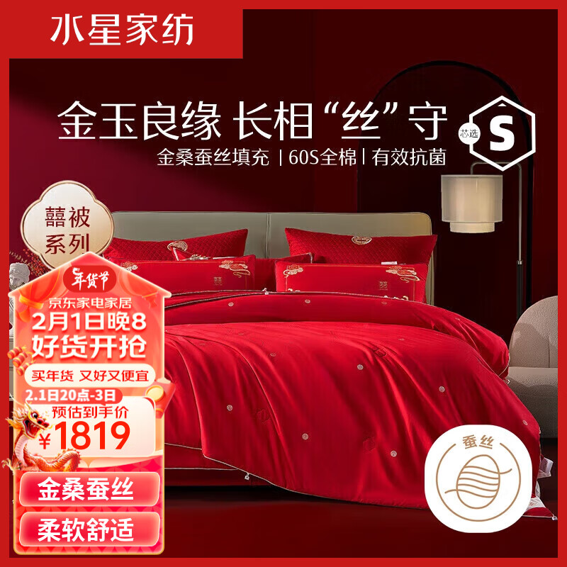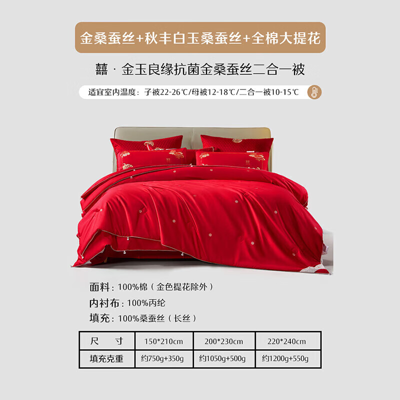 水星家纺抗菌100%桑蚕丝二合一子母被秋冬加厚被约10斤220*240cm价格:4399.00元!