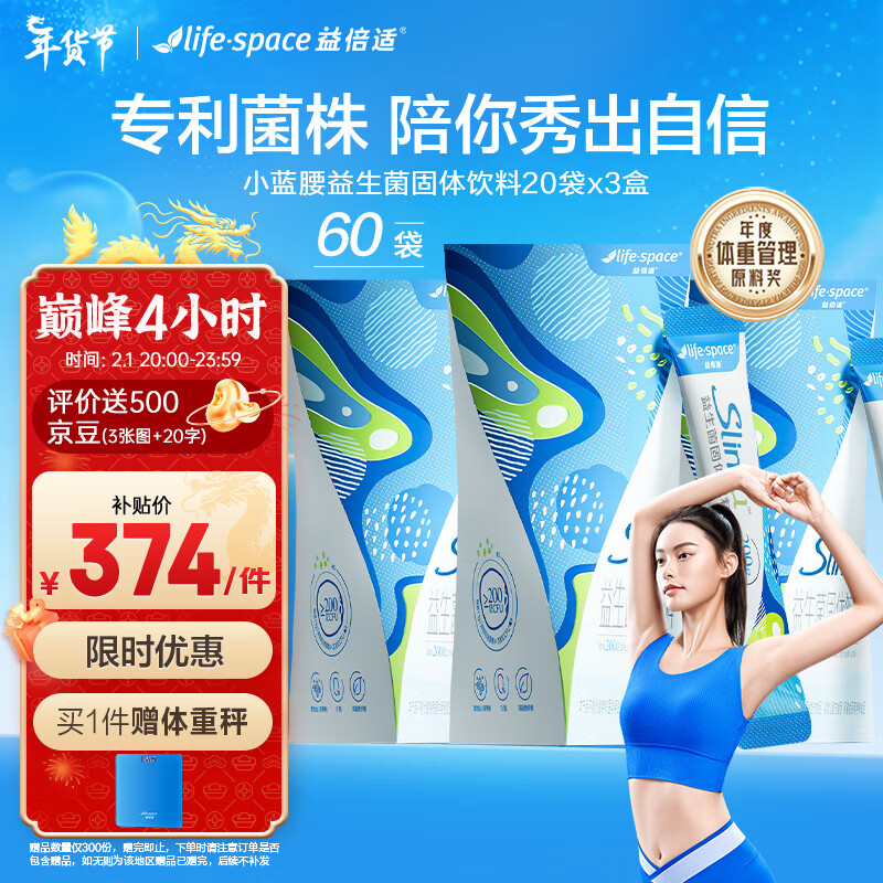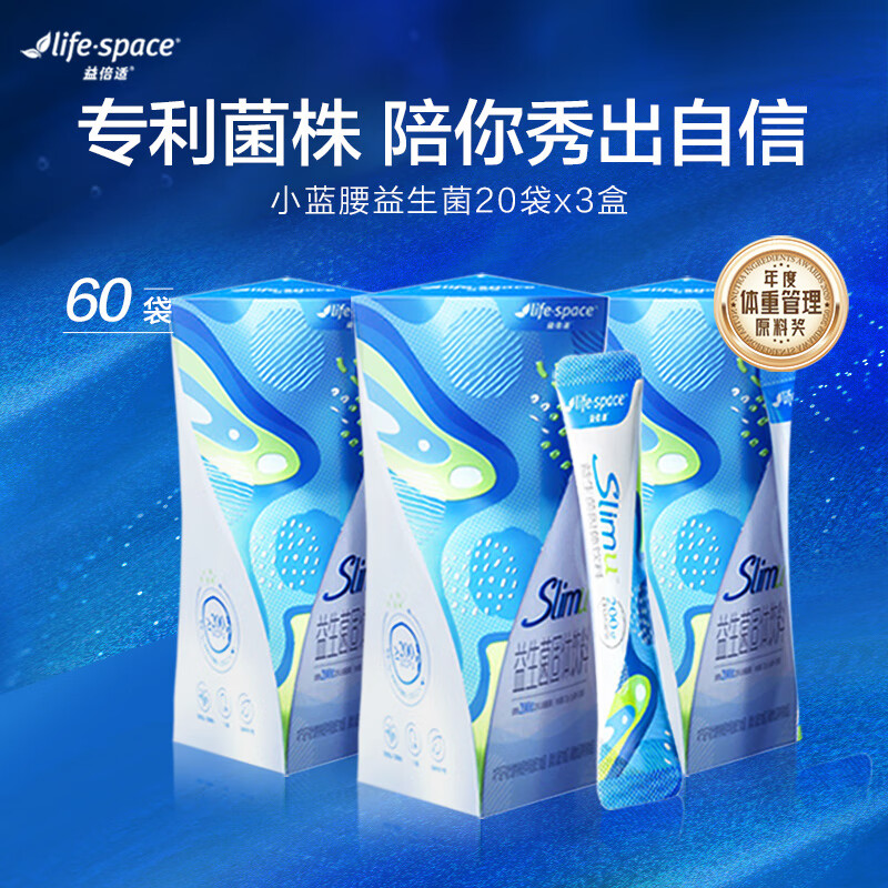 益倍适lifespace小蓝腰益生菌Slimu益生菌呵护肠道身材管理乳酸菌成人固体饮料( 20袋/盒*3)共60袋价格:374.00元!