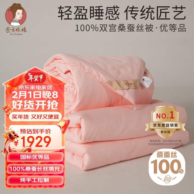 蚕花娘娘【丝路传奇】100%桑蚕丝被子芯四季子母丝重2+4斤200*230cm【粉】价格:2369.00元!