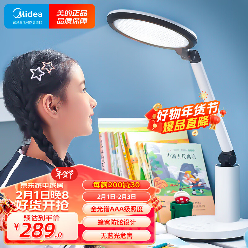 美的(Midea)AAA级护眼台灯全光谱学习阅读灯卧室书桌无蓝光危害台灯价格:319.00元!