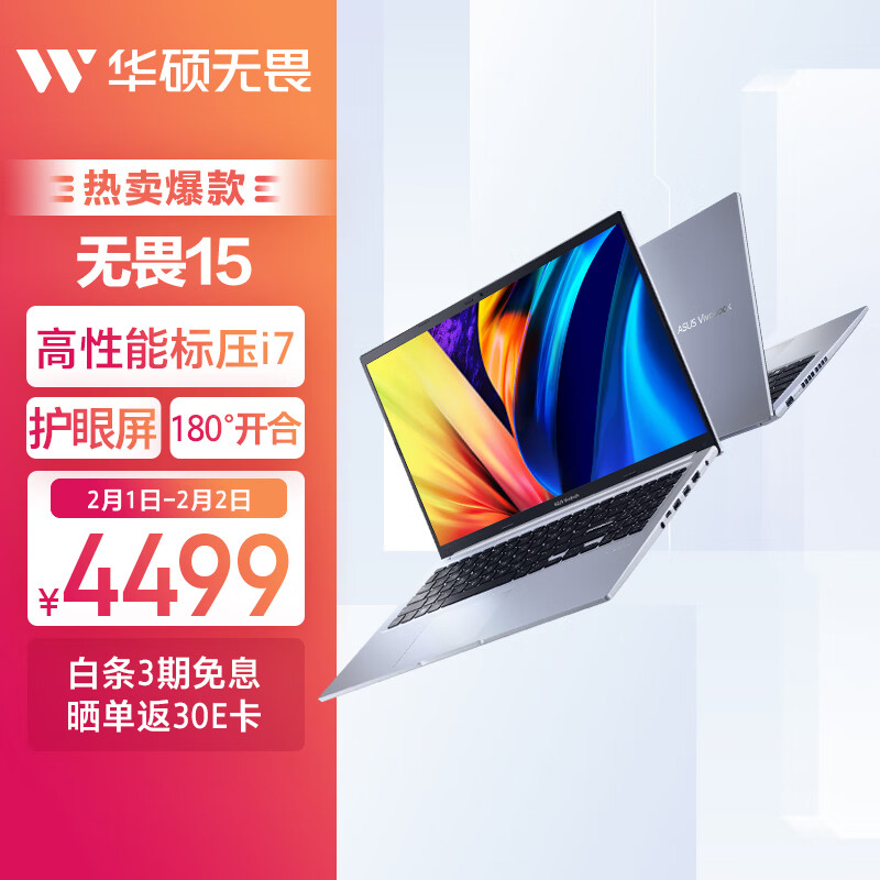 华硕无畏15高性能标压酷睿i7 15.6英寸轻薄便携大屏办公学生笔记本电脑(i7-12650H16G512G 莱茵护眼)银价格:4499.00元!