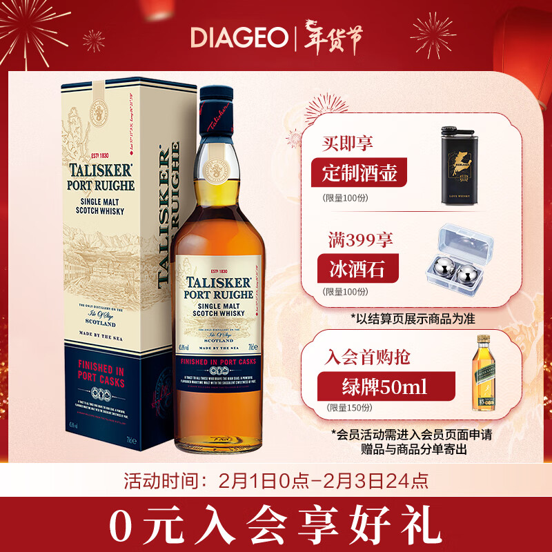 泰斯卡【年货送礼】 苏格兰 岛屿产区 单一麦芽威士忌 波特桶700ml价格:289.00元!