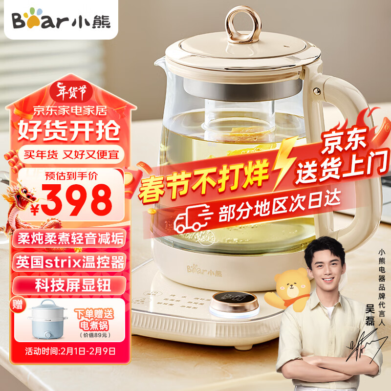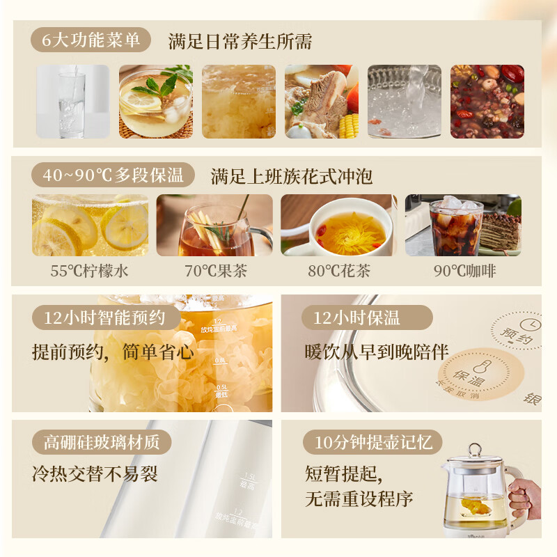 小熊(Bear)小气泡养生壶 烧水壶 1.5升家用恒温水壶煮茶器煮茶壶 降噪轻音 带玻璃炖盅 YSH-F15E1 玻璃花茶壶价格:448.00元!