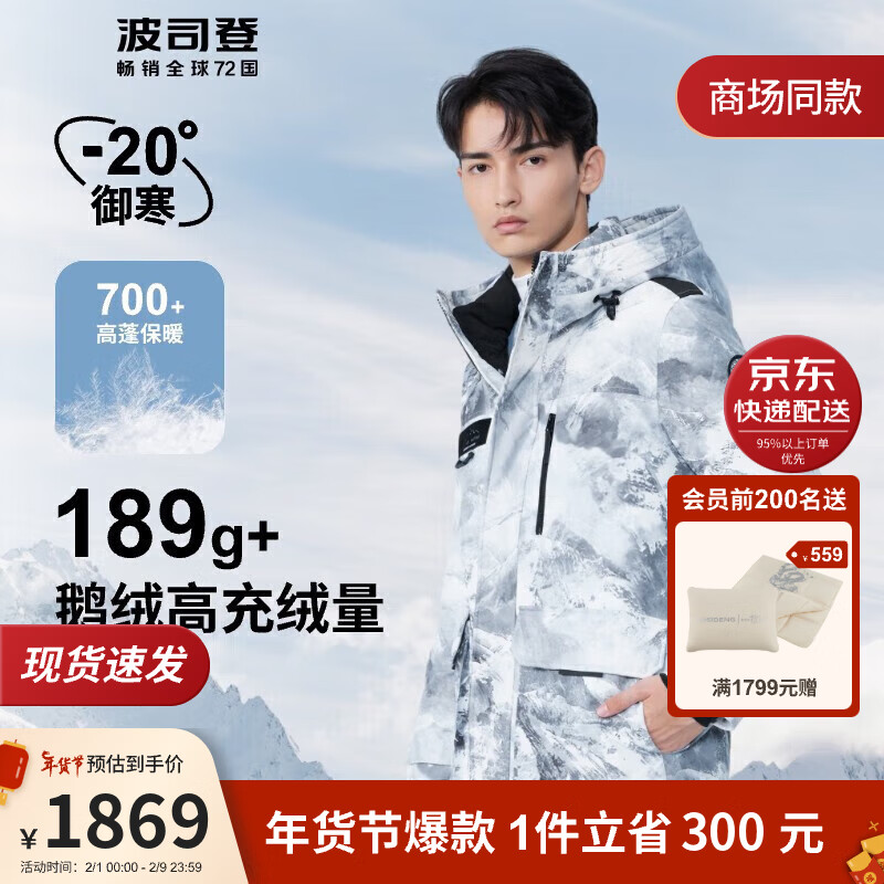 波司登极寒鹅绒羽绒服男款90绒加厚连帽时尚工装外套B30142311价格:2169.00元!