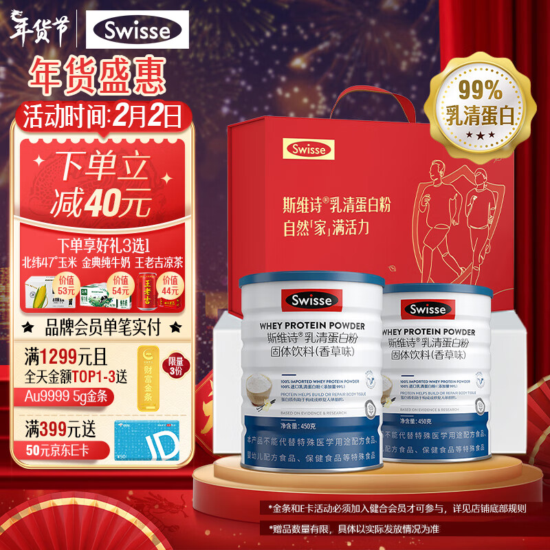 Swisse斯维诗 乳清蛋白粉香草味900g礼盒装【年货送礼】99%乳清蛋白 补充蛋白质氨基酸 中老年成人自护力价格:458.00元!