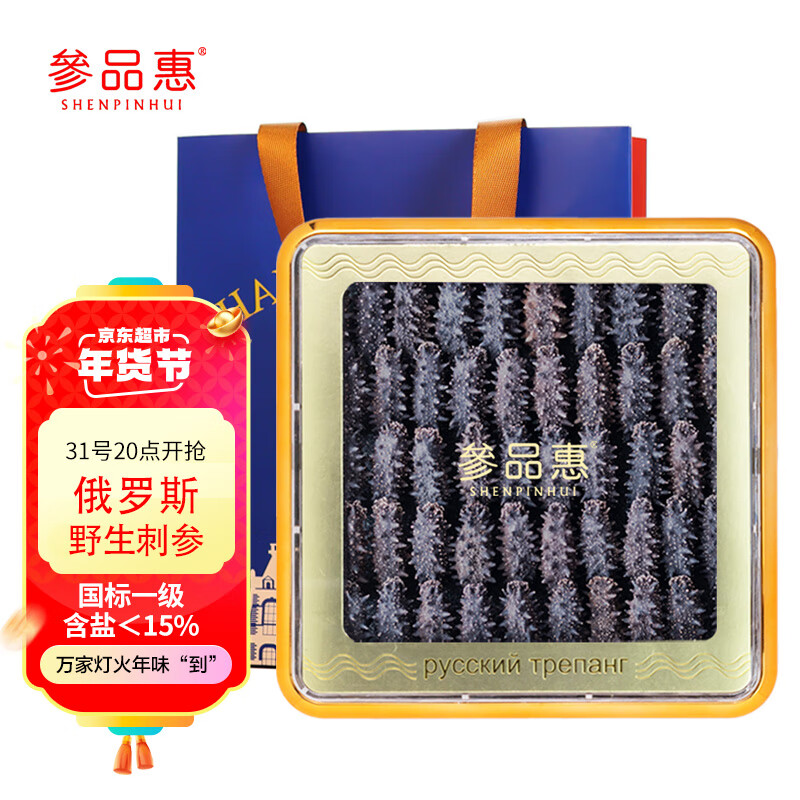 參品惠俄罗斯进口野生淡干海参国标一级200克/(58~68头)春节礼盒价格:2579.00元!