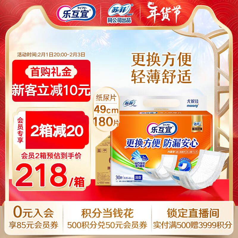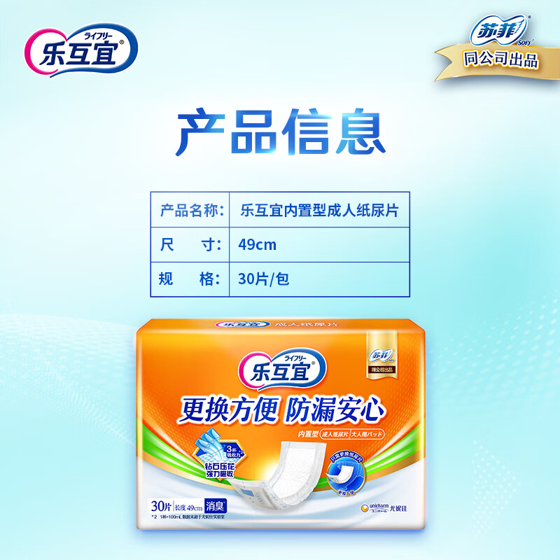 乐互宜防漏安心日用成人纸尿片老年人护理产褥垫49*22cm箱装180片价格:228.00元!