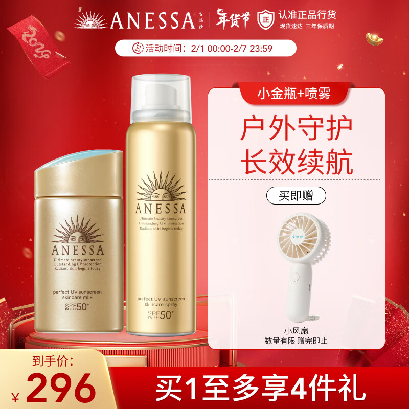 安热沙防晒套装小金瓶60ml+喷雾60g 防水防汗 户外套装价格:296.00元!