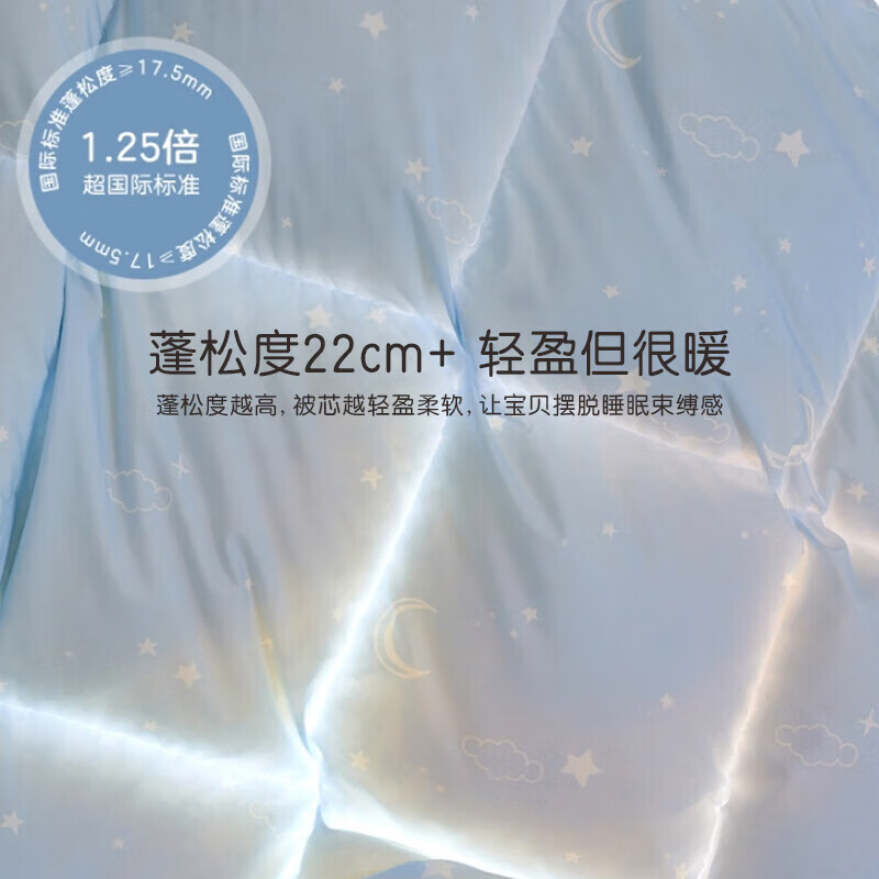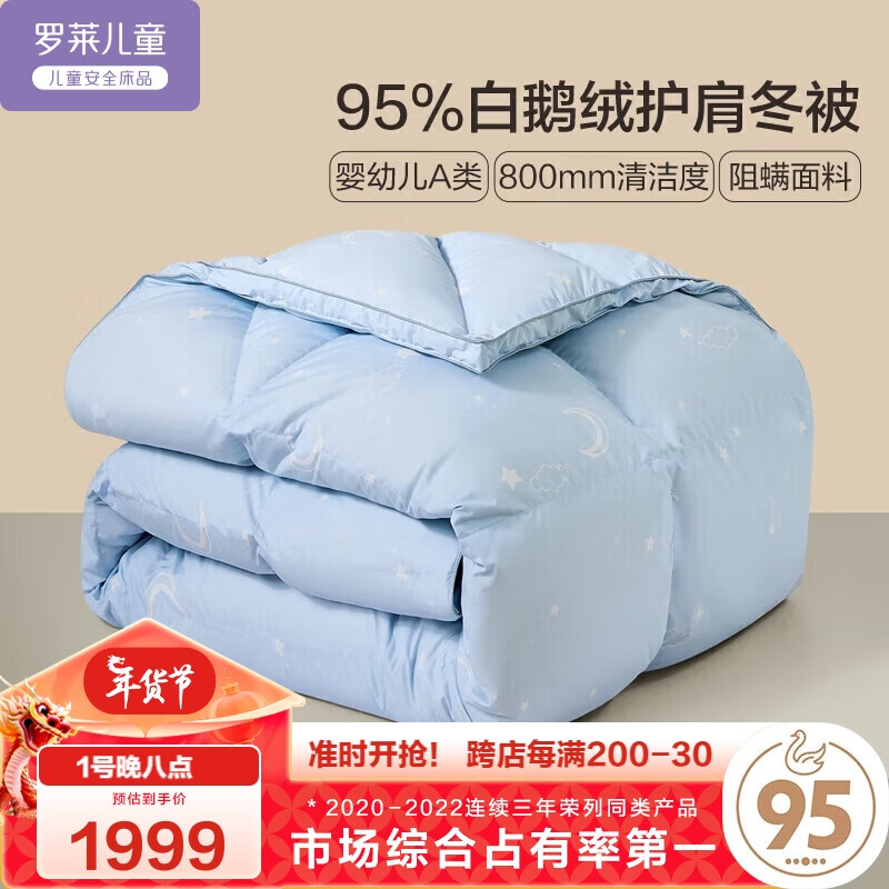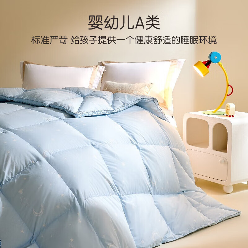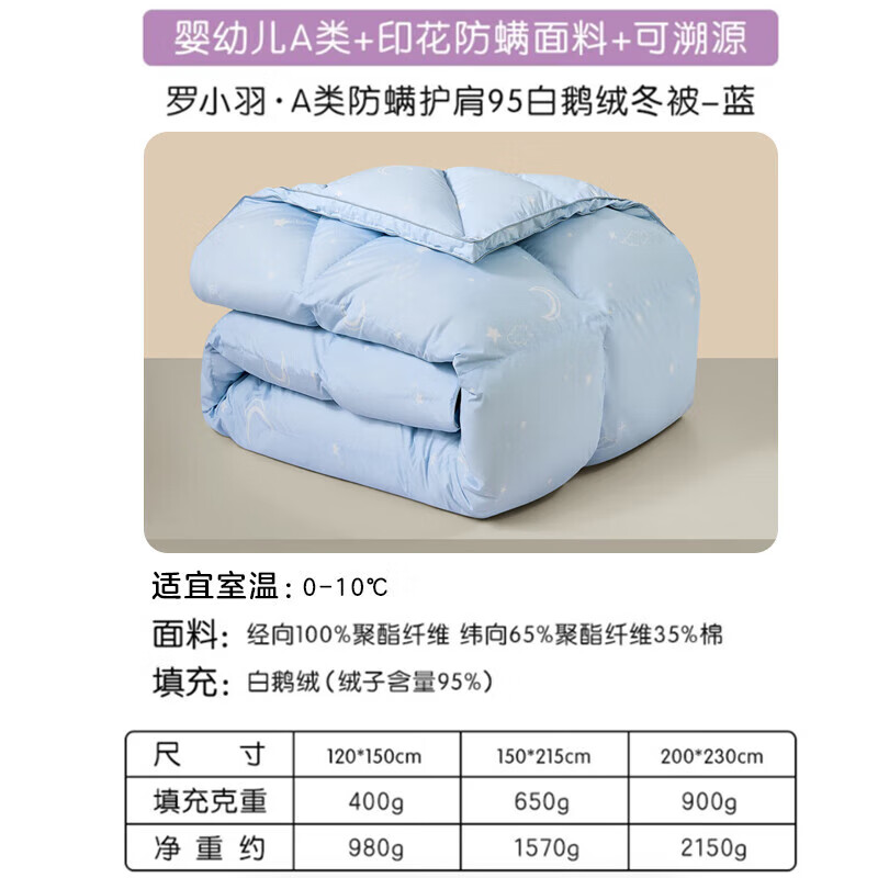 罗莱儿童 罗小羽 母婴A类防螨95%白鹅绒羽绒被 冬被 4.3斤200*230cm蓝色价格:2399.00元!