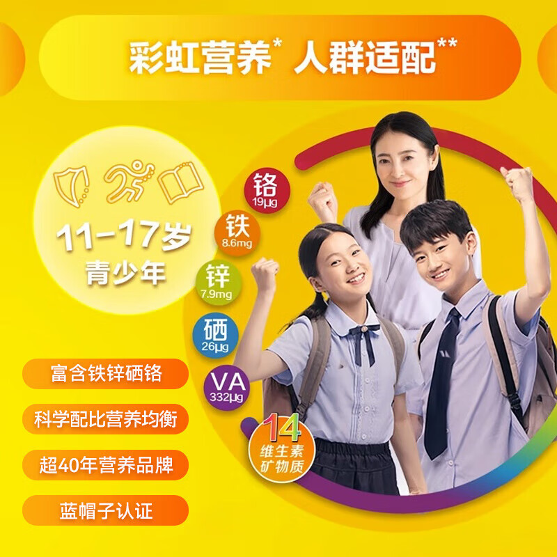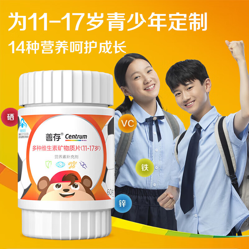 善存儿童复合维生素C 烟酰胺 维生素e b族补铁锌维c 青少年11-17岁多维元素矿物质片vc 60片新旧包装随机发货价格:159.00元!