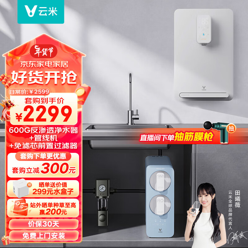 云米(VIOMI)小蓝调600G全屋净水套装净水器+管线机MG2-B+前置过滤器VF4-A三件套家用直饮加热即热净水器净水机价格:2599.00元!
