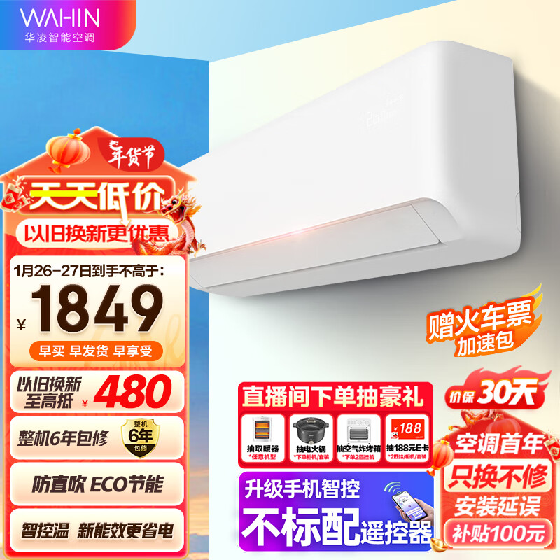 华凌空调 新能效 变频冷暖 自清洁 1匹 客厅卧室挂式空调挂机 以旧换新 京东小家智能 KFR-26GW/N8HA3价格:1849.00元!