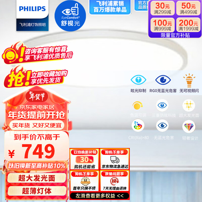 飞利浦led吸顶灯卧室灯客厅灯书房超薄灯饰灯具调光36WOzziet 白价格:1049.00元!