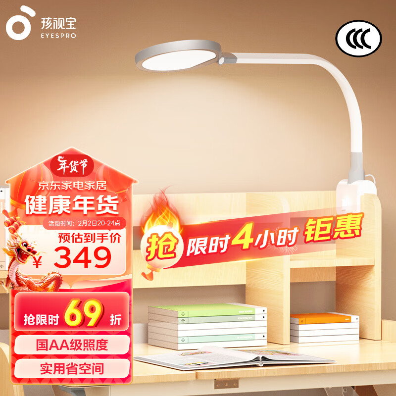 孩视宝国AA级夹式全光谱护眼台灯学习专用卧室床头灯读写阅读夹灯TM31价格:509.00元!