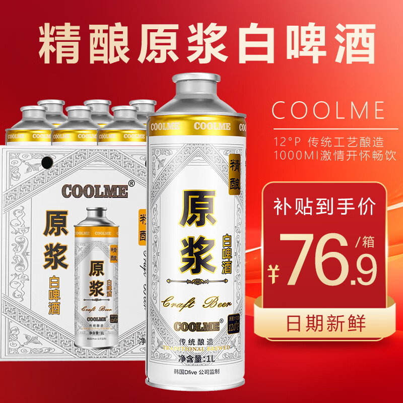 CoolMe精酿原浆白啤酒 1L*6听 整箱装 国产价格:76.90元!