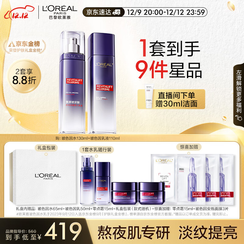 欧莱雅复颜玻色因水乳礼盒 补水保湿 提亮紧致 护肤品套装生日礼物价格:419.00元!