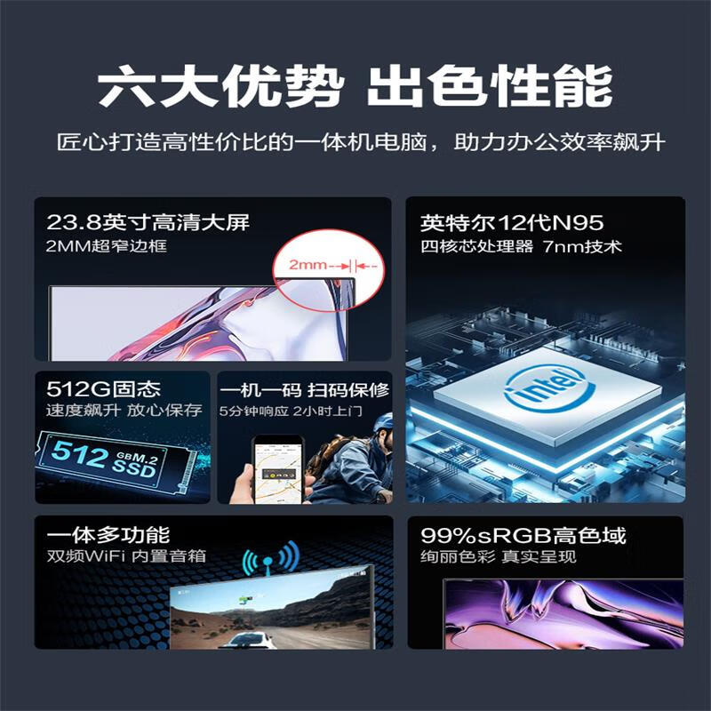 AOC大师926Pro 23.8英寸商用家用办公一体式台式电脑(12代N95 16G 512G 壁挂 双频WiFi 无线键鼠)黑价格:1999.00元!