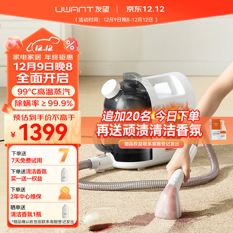 uwant友望蒸汽布艺沙发清洗机 家用多功能清洗 沙发地毯床垫宠物垫窗帘汽车清洁神器B200价格:1399.00元!