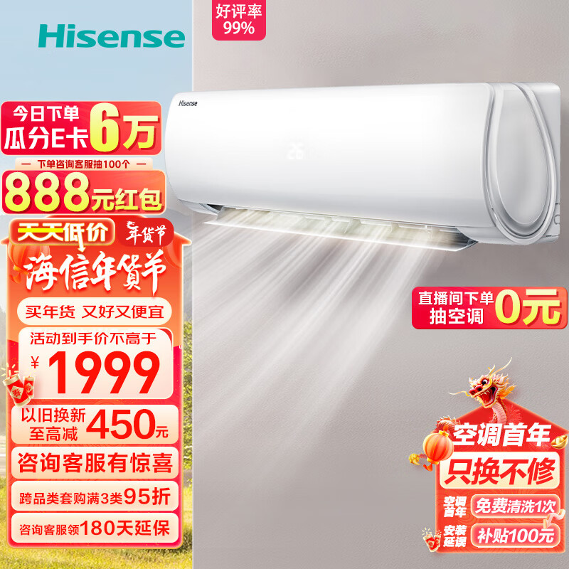 海信(Hisense)1.5匹 速冷热 新三级能效 睡眠模式变频冷暖壁挂式卧室空调挂机 KFR-35GW/E25A3a价格:1999.00元!