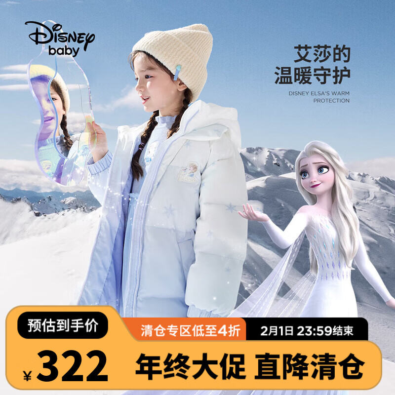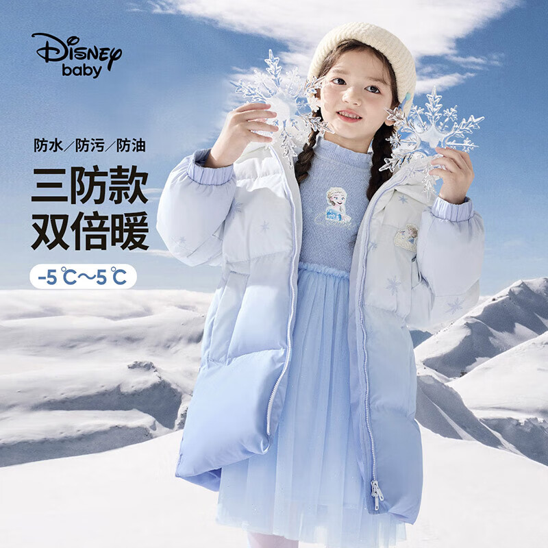 迪士尼(DISNEY)童装儿童女童假两件连帽羽绒服中长保暖外套23冬DB341KE54蓝160价格:322.00元!