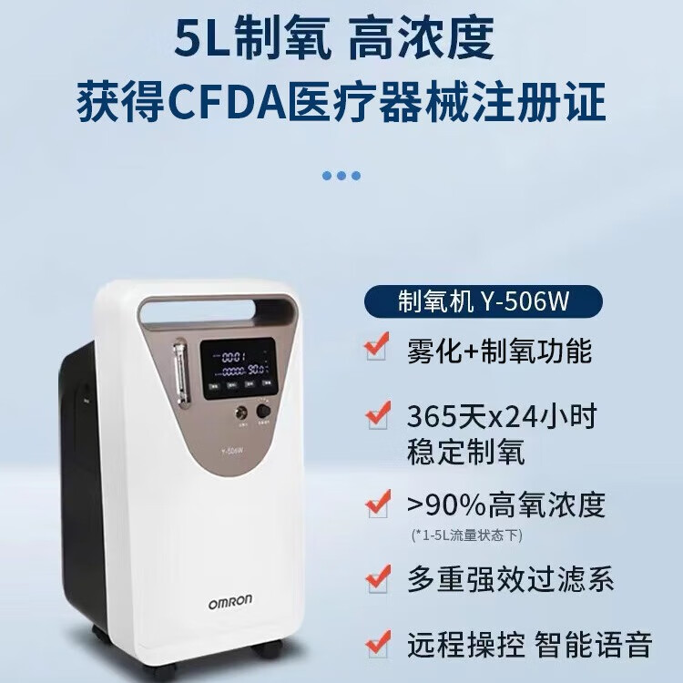 欧姆龙 (OMRON) 5L制氧机老人孕妇家用吸氧气机 高流量家庭氧疗雾化一体 大屏触控 Y-506W价格:3880.00元!
